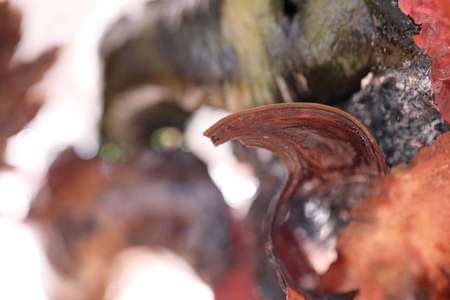 The abstract picture of dried flowers and leafs were frozen in the ice.