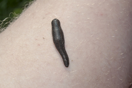 leech on a leg of human closeup
