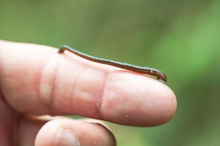 Julida is an order of millipedes on the man's hand.
