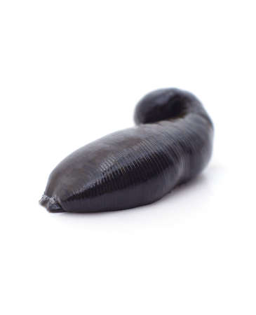 Alternative medicine. One leech isolated on white