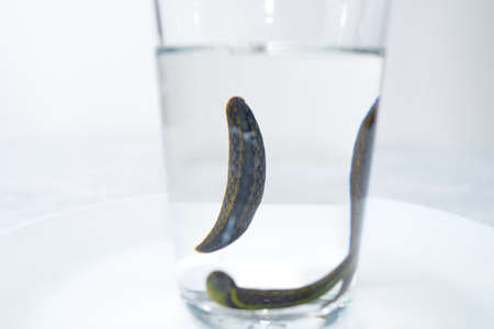 Hirudotherapy. Medical leeches in water before therapy.