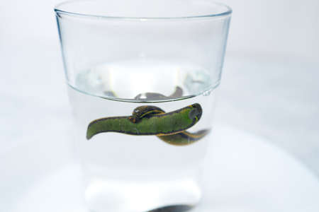 Hirudotherapy. medical leeches in a glass in water
