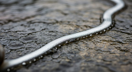 Stunning composition of delicate transparent eels on a soft pink backdrop. The water droplets enhance their graceful form, showcasing nature's beauty.