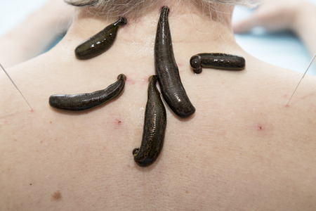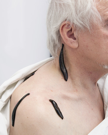 Treatment with leeches shoulder and neck area, back area in the middle of the right and left shoulder girdle