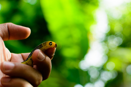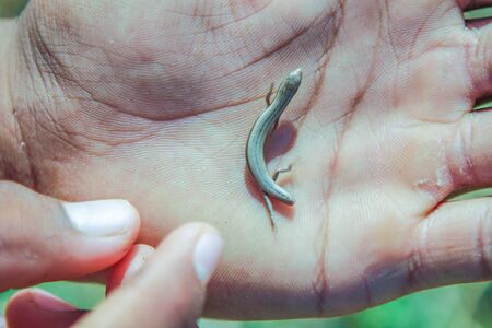 Tailless lizard, tail torn off. Lizard on hand.