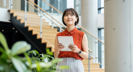 Young Asian businesswoman using digital tablet in the office. Business and technology concept.