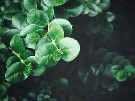Selective focus closed up tropical summer green leaf dark tone background