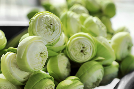 Fresh leek for sale at the local market in Bangkok, Thailand.