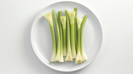 Generative AI : Celery stalk isolated Celery sticks on white Green celery with leaves Celery set on white background