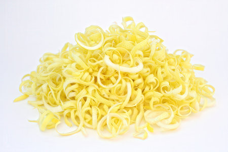 closeup of a pile of yellow noodles isolated on a white background
