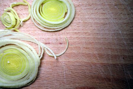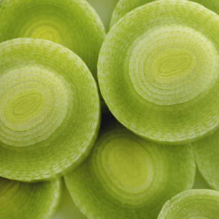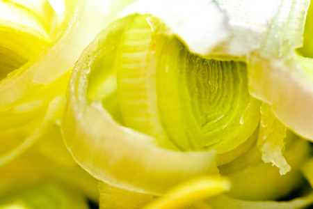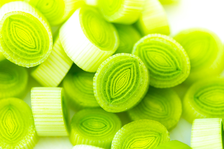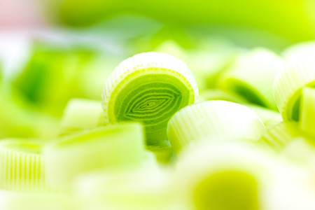 Sliced leek close-up as background