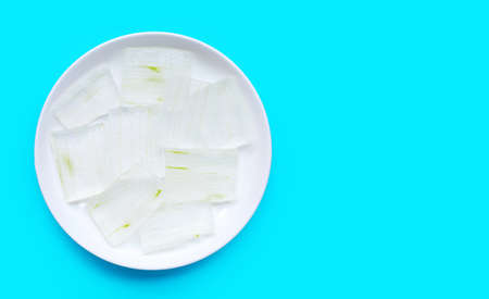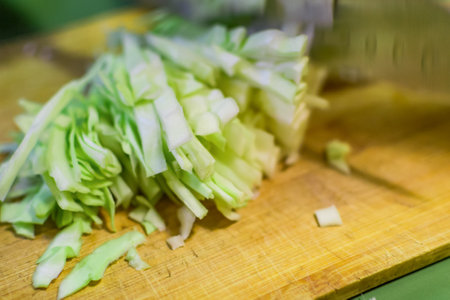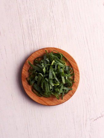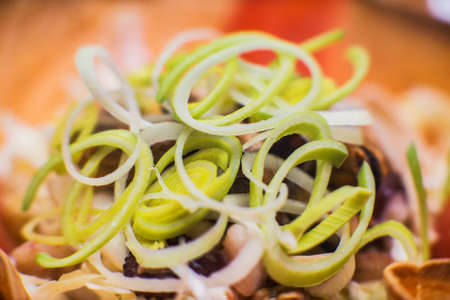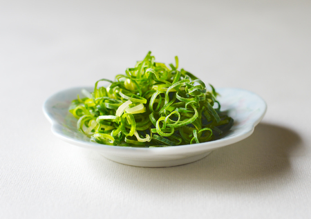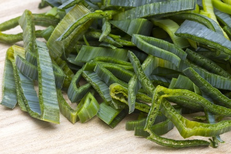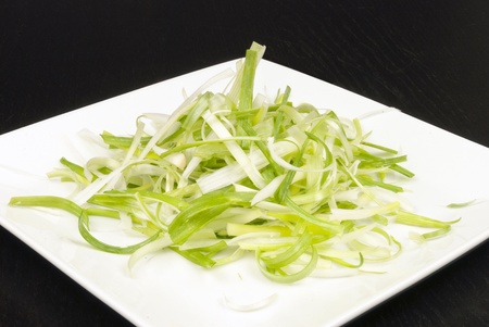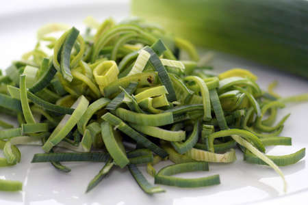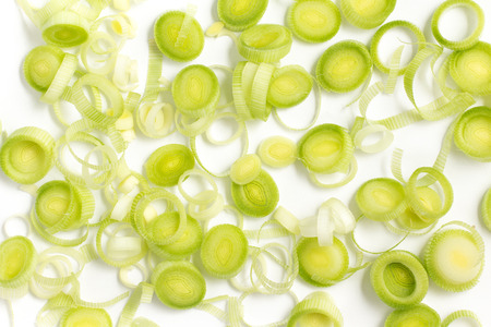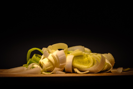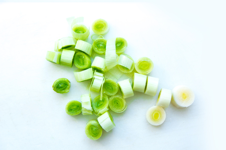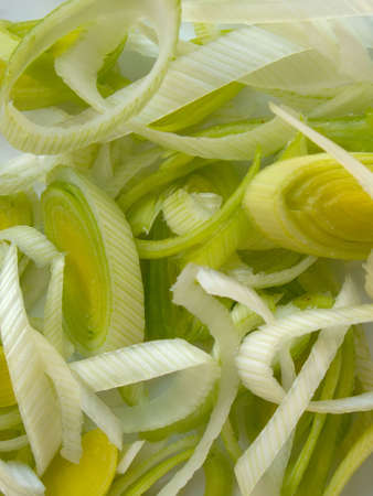 Photography of thinly sliced leek from white to green for food background