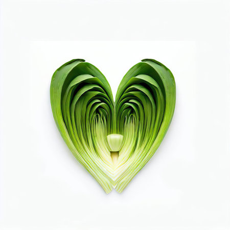 Heart made of green leek isolated on white background with clipping path