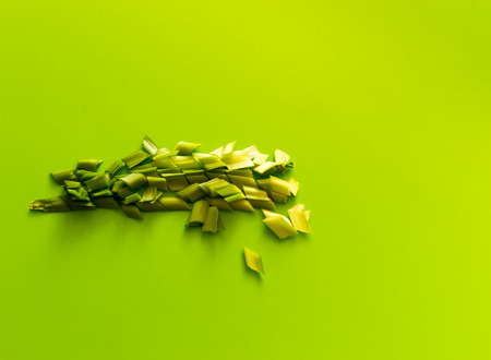 Finely chopped spring onions on a green plastic background