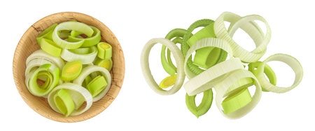 Sliced fresh raw leek on white background. View from above
