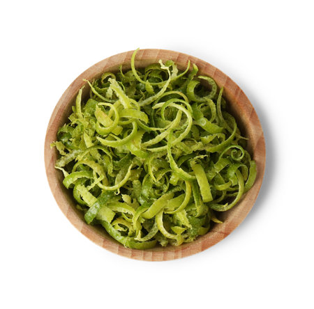 leek julienne in front of white background