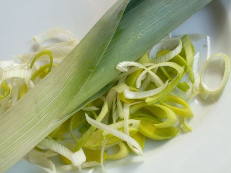 Close up photo of sliced leeks.