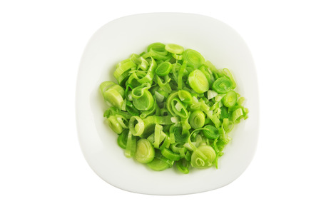 chopped green onion in a white background