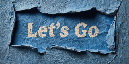 Textured blue paper tearing, revealing a strong message let's go underneath, symbolizing motivation, new beginnings, exploration, personal growth, and challenges