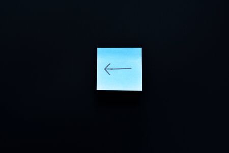 A black wooden arrow pointing left rests on a smooth white surface, focusing on design elements and directional cues.