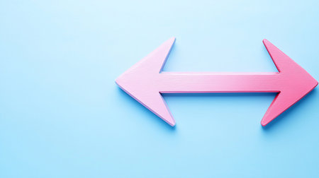 A pair of wooden arrows, one light pink and one bright pink, are positioned horizontally and pointing away from each other.