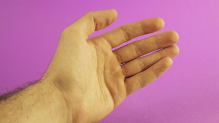 empty male hand holding palm up. Man's hand holding an invisible object on a light background. Hand gesture.