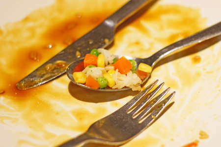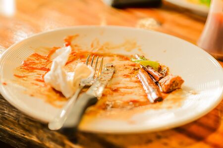leftovers in the plate after eating. concept after eating