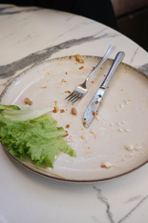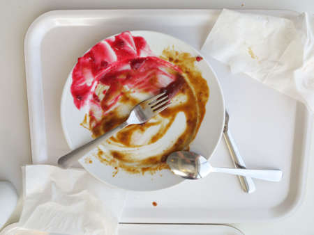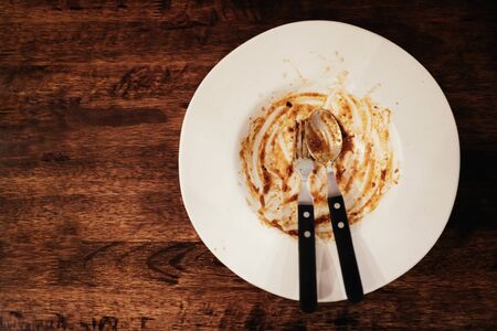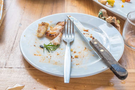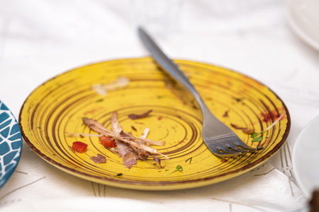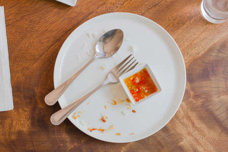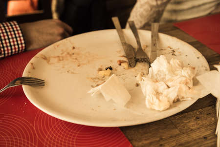 dirty plate after eating on the dining table