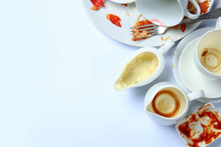 Dirty empty dishes on white background