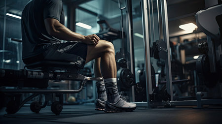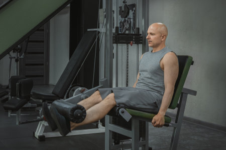 Person using leg extension machine leg muscles clearly defined section of the gym with proper ventilation and lighting