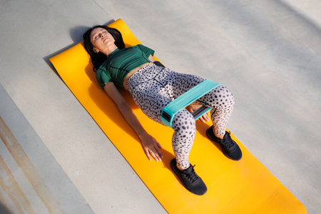 Young Athlete Engaged in Butt Toning Exercises using Resistance Bands Outdoors