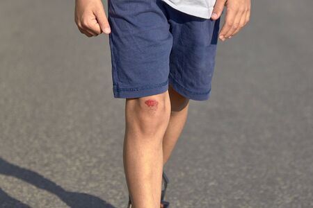 sore on the knee bruised wound on the knee, the boy fell and scratched his knee