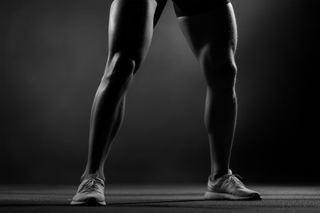 Dynamic athlete showcasing powerful leg muscles in a monochrome setting during a fitness session