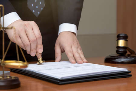 Notary public, attorney. Law concept with stamp in courtroom. law judge contract court legal trust legacy stamp.