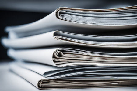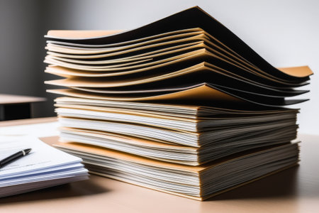 Closeup office table with organized stacked papers, as the concept of organized document management system for busy business reports or legal papers. equility
