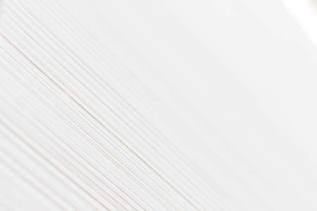 Close up of stack of papers on white background. Office: Pile of Paper
