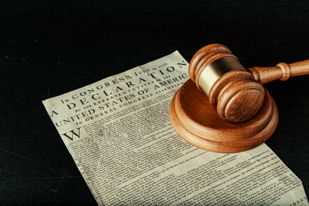 Brown wooden mallet on American Declaration of Independence