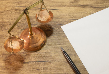 scales of justice near a blank sheet of paper