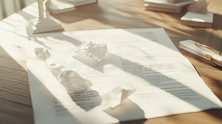 Generate an image of a crumpled legal document revealing evidence of fraud, its intricate details rendered flawlessly in 4k --chaos 30 --ar 16:9 --v 6.1 Job ID: 2993dc1e-cf94-4ff3-bd8e-ae5be5aeca50