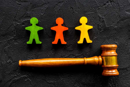 Numan wooden figurines with judge gavel. Resolving conflict situation