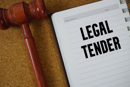 Legal Tender text written on notebook paper with Judges Gavel