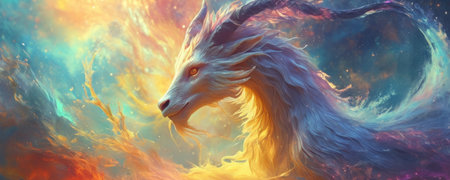 Majestic Dragon Embodies Cosmic Energy, With Celestial Backdrop And Mythical Allure, Copy Space. Сoncept Nature's Serene Beauty, Dramatic Landscape Photography, Magical Forest Enchantment.