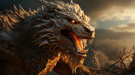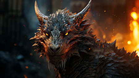inematic 3d image dragon with burning eyes spines made with generative AI