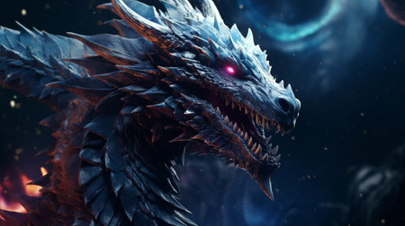Cinematic 3d image dragon with burning eyes spines made with generative AI