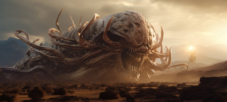 Fantastic evil alien monster from another planet with scary fangs, teeth and tentacles. Inhabitant of alien worlds