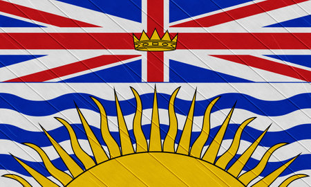The official flag of British Columbia. Canada. Conceptual collage on wood texture.