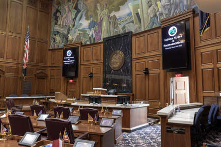 Indianapolis - Circa March 2022: Indiana House of Representatives chambers. The House of Representatives makes up one half of the General Assembly.