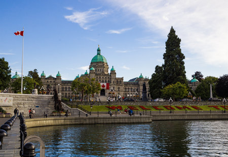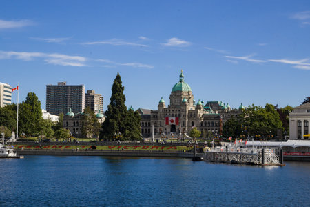 Victoria Harbor with the British Columbia Parliament Building in the background. The BC Parliament Buildings are located in Victoria, BC, Canada and are home to the Legislative Assembly-July 21,2021