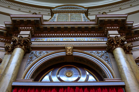 Springfield USA - September 1 2015; The General Assembly sign on wooden beam inside Illinois State Capital Building Springfield, Illinois, USA