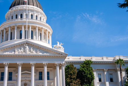 California State Capitol Building with Dome and Palm Tree in Sacramento